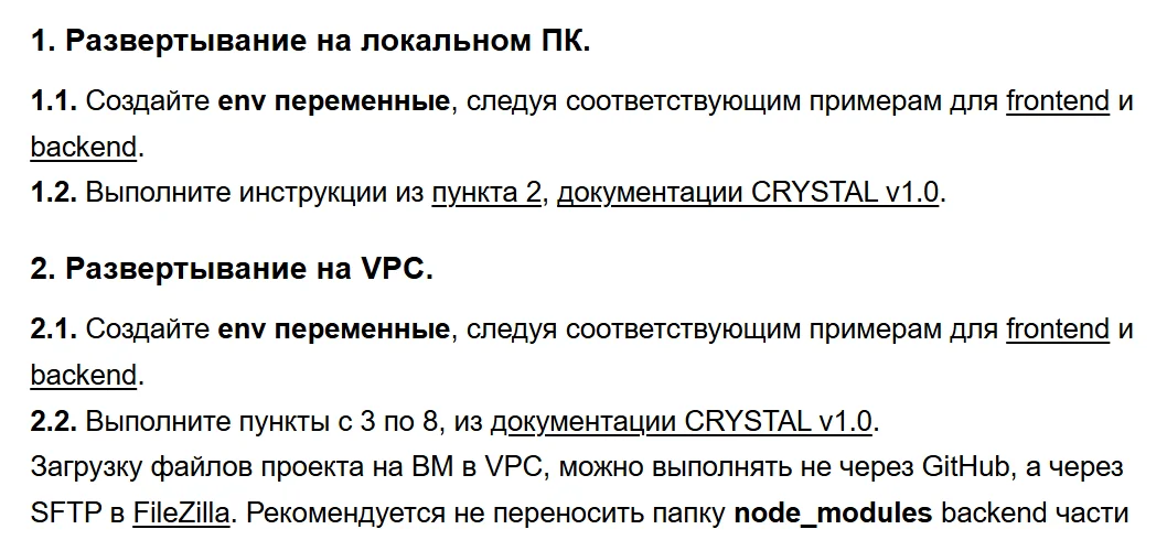 Инструкция по развертыванию CRYSTAL v2.0 на локальном ПК и VPC