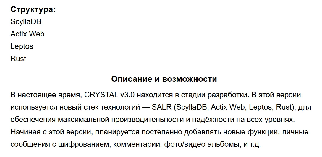 В версии CRYSTAL v2.0 планируется вынести лайки в отдельную коллекцию, оптимизированную для масштабируемой обработки реакций. Кроме того, Mongoose будет полностью заменён нативным драйвером MongoDB, что обеспечит значительный прирост производительности CRUD-операций, снизит задержки при массовых запросах и повысит общую эффективность взаимодействия с базой данных.